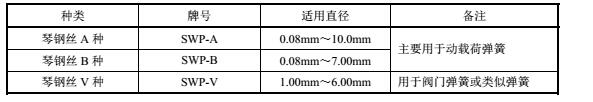 鋼絲的種類有 3 種,其牌號及適用直徑見表 1。