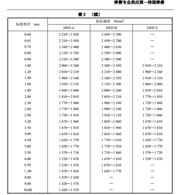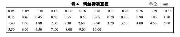 備考 鋼絲直徑位于兩標準直徑之間時,采用比其大的標準直徑的數(shù)值。纏繞性