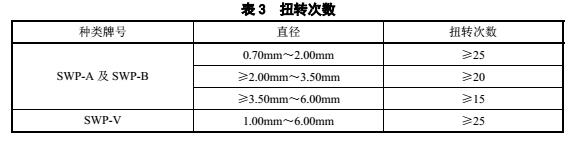 扭轉特性直徑 0.70mm~6.00mm 的鋼絲,按 8.4 條進行扭轉性試驗,其扭轉次數(shù)見表 3。此時,
