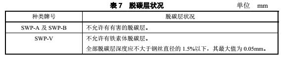 直徑 0.70mm 以上鋼絲的脫碳層按 8.8 條檢驗,脫碳層見表7。